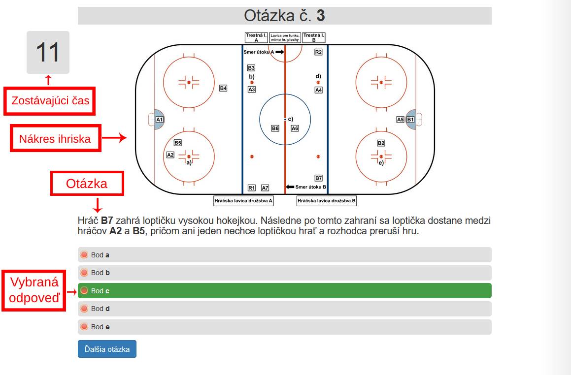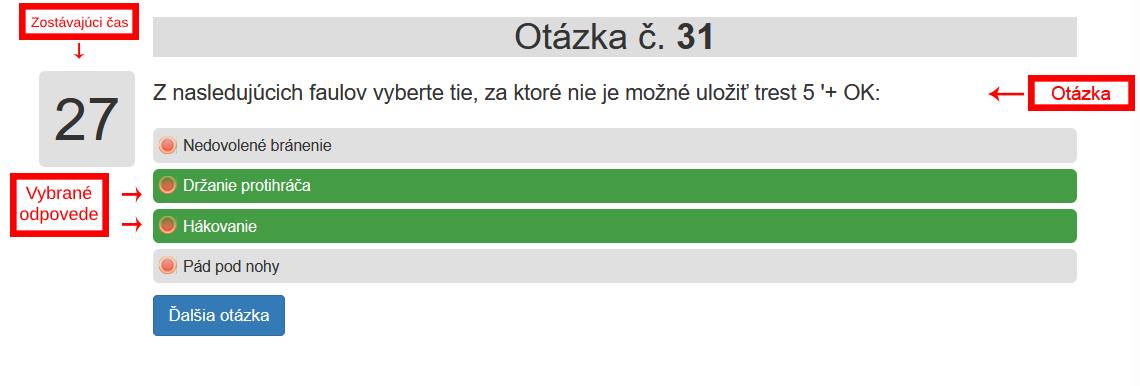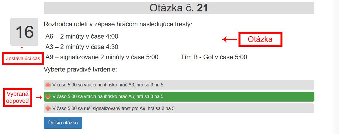 V prípade, že odpoviete na otázku pred vypršaním časového limitu a chcete pokračovať k otázke nasledujúcej, stačí iba kliknúť na príslušné tlačidlo - "Ďalšia otázka".